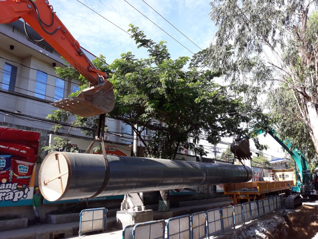 Pipelaying of an 80 km pipeline consisting of 600mmø – 1,500mmø (Polyurethane lined and coated as per AWWA C222 or epoxy-lined and coated as per AWWA C210-70 Steel pipe), 400mmø – 500mmø (Ductile Iron Pipe) and 300mmø (PVC Pipe) shall be laid among the existing Quirino Highway, Tungkong Mangga – Muzon Road, Villarica – Marilao Road and towards Mac Arthur Highway from the junction at Obando to Calumpit.